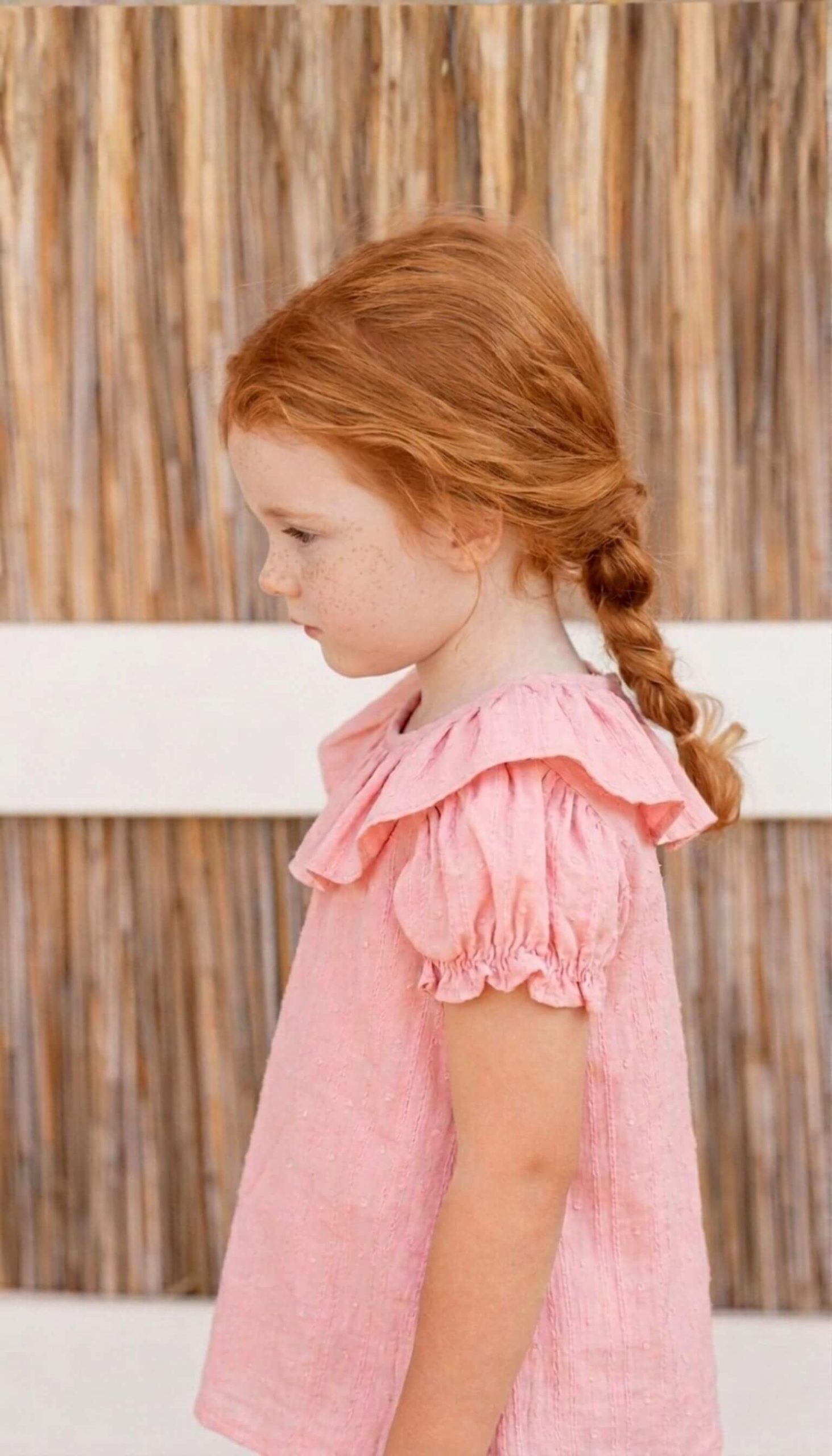 Blusa con manga corta abullonada en plumeti rosa