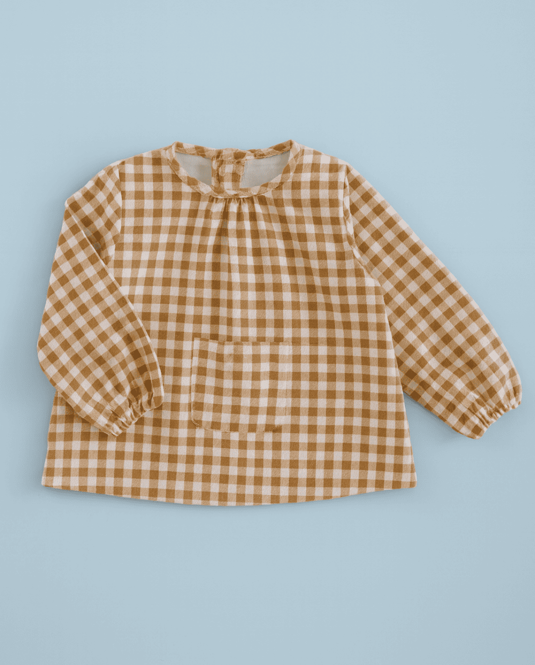 Camisa Jorge confeccionada con goma en cintura, prenda forrada en el interior, con apertura total en el delantero y bolsillos en forma de corazón confeccionados con el mismo tejido. En la parte trasera tiene una goma en la cinturilla que hace que la prenda se adapte a la figura de la peque. Una prenda ideal para combinar con blusa o jersey de punto, un básico para esta temporada.