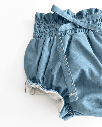 Petito vichy lago, engomado en cinturilla y muslos. A modo detalle 4 botones en los laterales y los otros dos son para unir los tirantes.