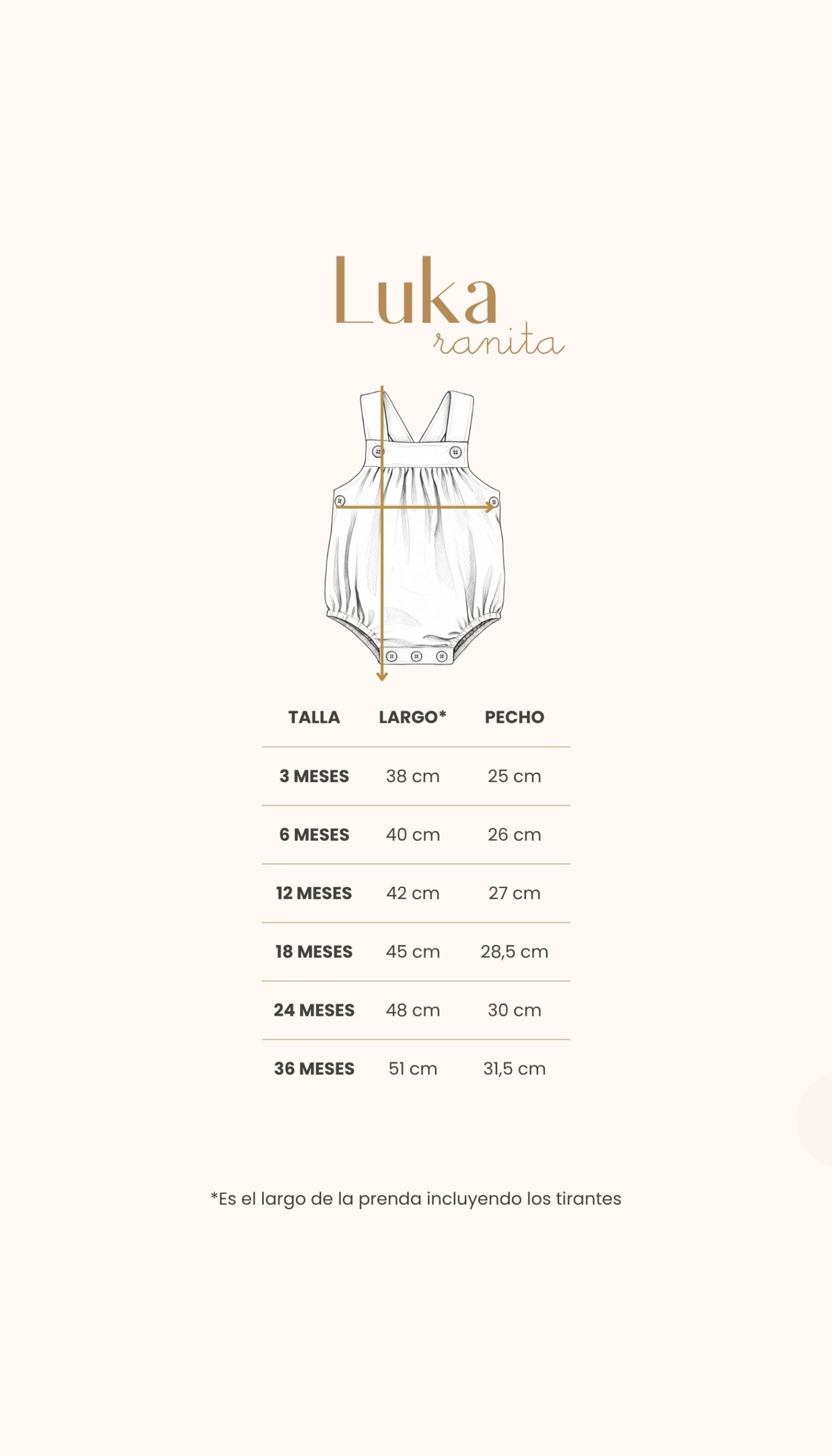 Si quieres ver cómo combinamos las prendas que tenemos a la venta puedes seguirnos en Instagram, haciendo click AQUÍ. Esperemos que la tabla de medidas de la prenda te saque de dudas a la hora de elegir talla para tu peque.