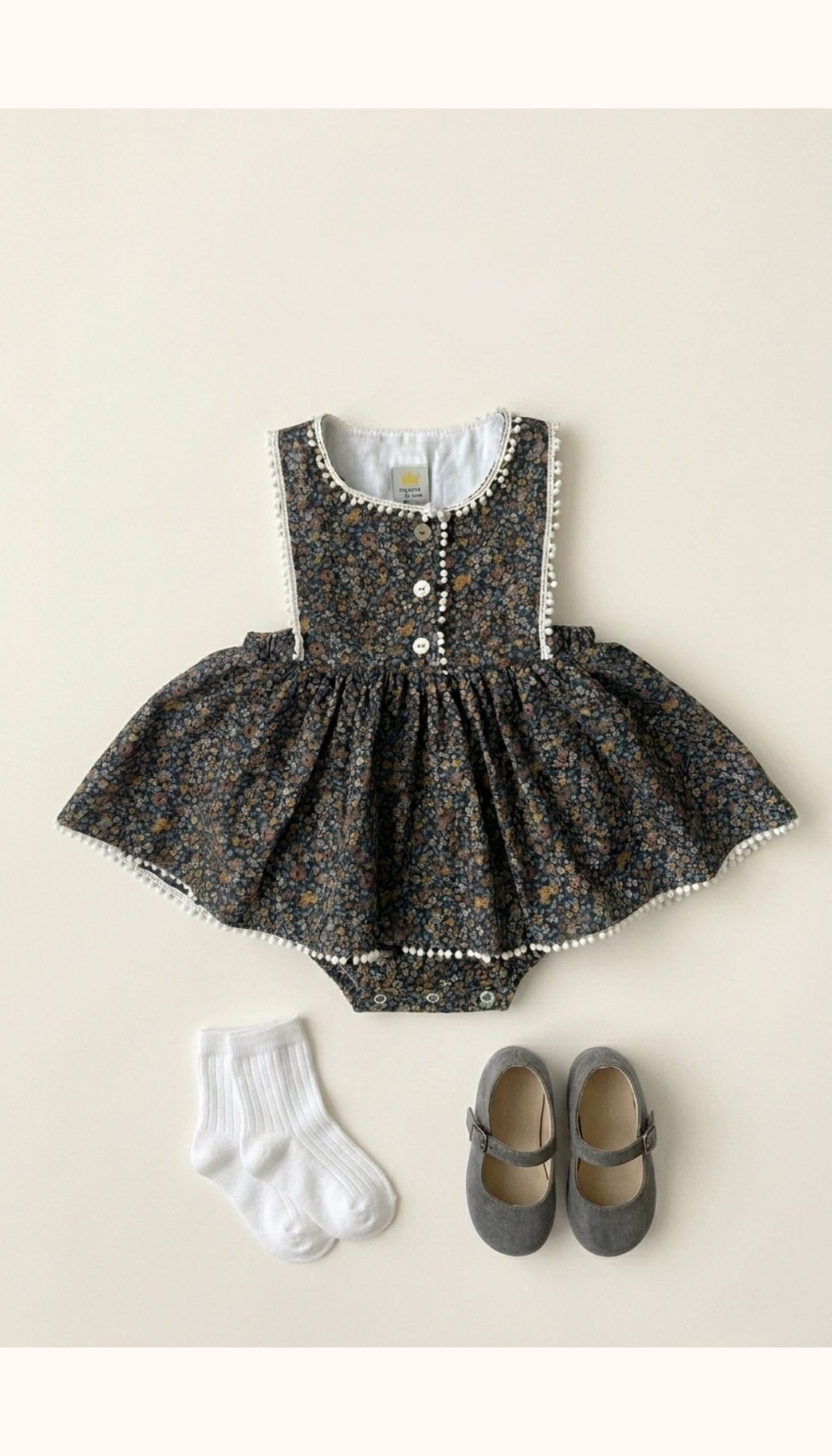 Ranita cuerpo niña liberty New Jersey, confeccionada en estampado de flores en tonos tierra. Prenda forrada en el interior, con apertura en el delantero, gomas en los laterales y abotonadura en el bajo para que se ajuste mejor a la figura del peque. La puntillita en el bajo del volante y en el cuerpo del canesú hacen de esta ranita una prenda muy especial. Una prenda ideal para combinar con blusa o jersey de punto, un básico para esta temporada.