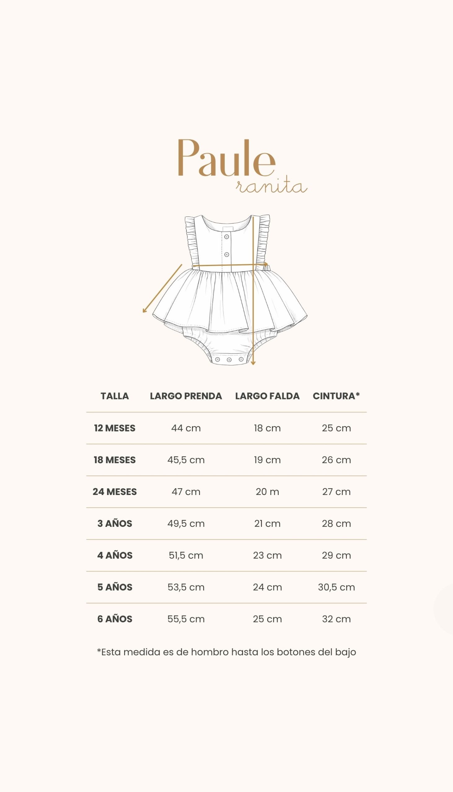 | TALLA | 12 Meses, 18 Meses, 24 Meses, 3 Años, 4 Años, 5 Años, 6 Años |